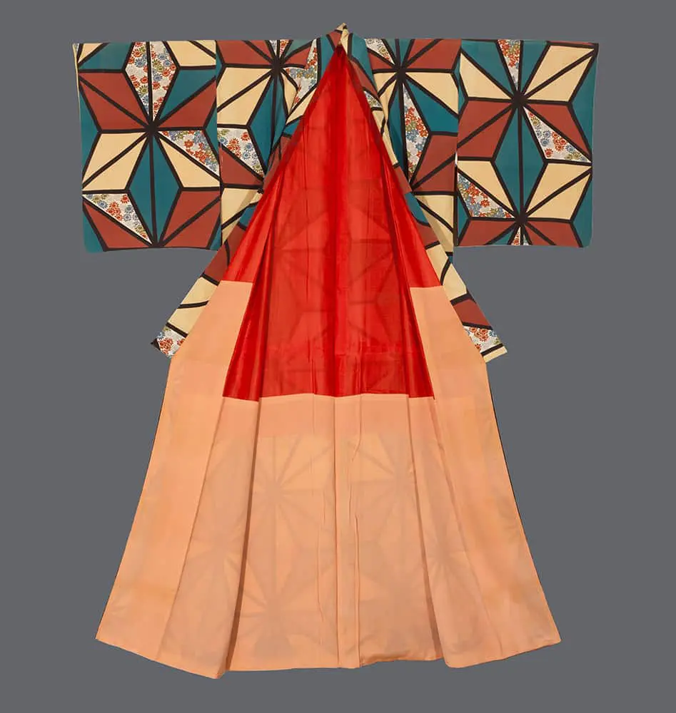 This kimono represents an important moment in Japanese textile design when traditional motifs were being reinterpreted through a modern lens. The enlarged scale of the asanoha pattern, the bold color choices, and the graphic treatment reflect the influence of contemporary design movements while maintaining the essential character of Japanese aesthetic principles.