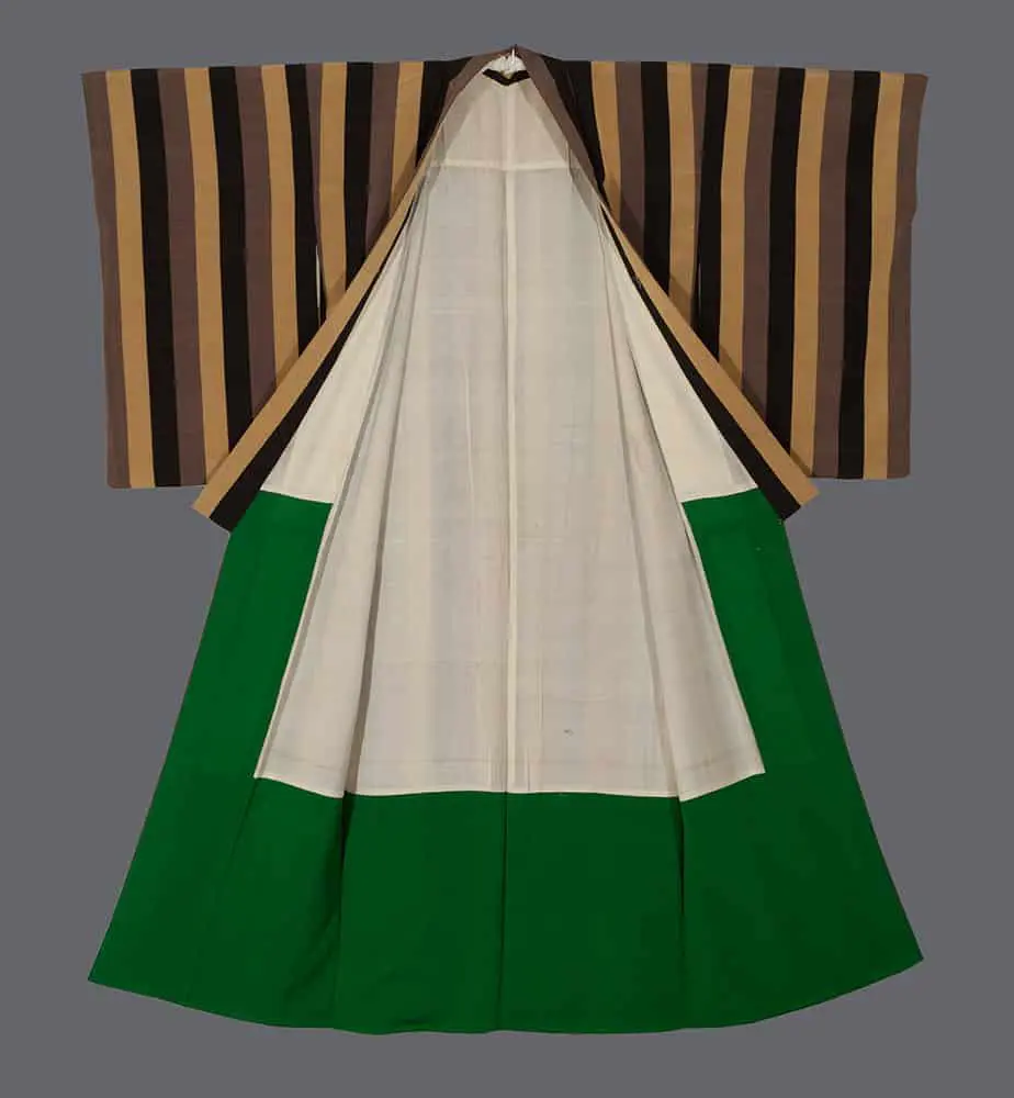 The result is a kimono that would have been considered both fashionable and appropriately formal, suitable for educated urban wear during a period when Japan was rapidly modernizing while maintaining its cultural traditions. The sophisticated color relationships and precise execution demonstrate the high level of textile craftsmanship that continued to flourish even as kimono design evolved toward more contemporary sensibilities.