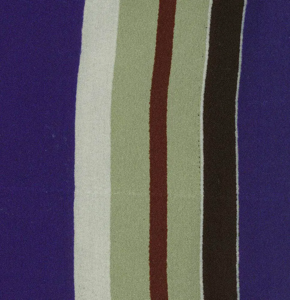 The garment features a striking vertical stripe pattern (tatejima) rendered in a rich palette dominated by deep royal purple, accented with bands of golden yellow, burgundy red, and dark brown or black. The stripes vary in width, creating visual rhythm and preventing the monotony that might result from uniform spacing. This variation in stripe width demonstrates the refined aesthetic judgment typical of high-quality Taisho period textiles.