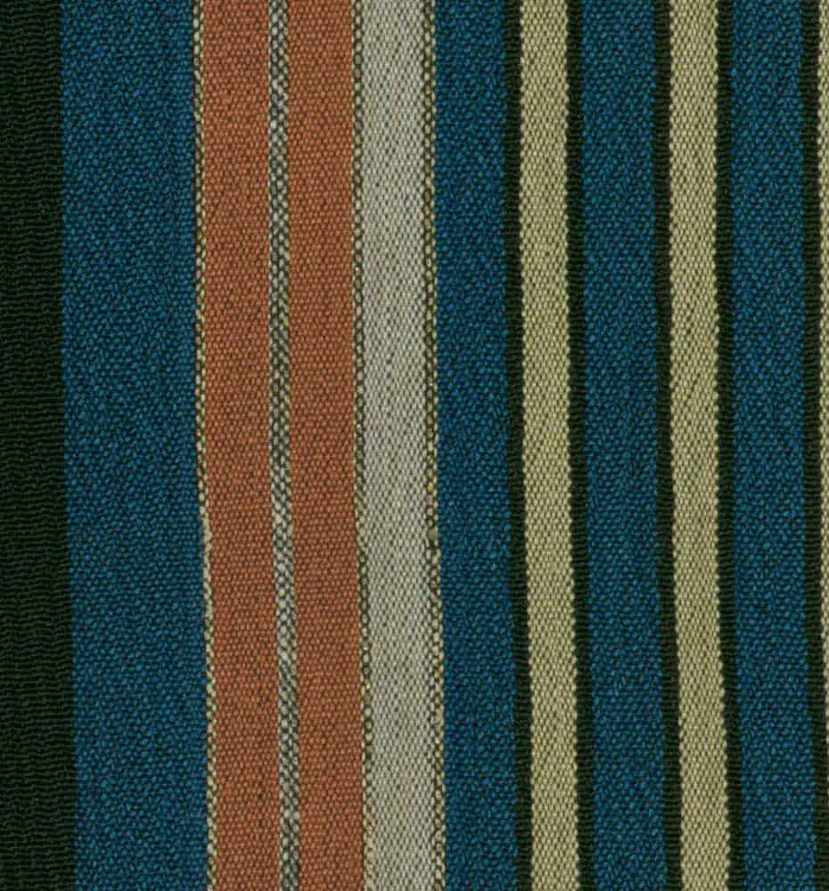 This silk kimono displays vertical stripes in a harmonious color palette of cream/ivory, teal blue, and warm orange-rust tones, creating a rhythmic pattern across the entire surface. The vertical striping creates visual elongation and elegance typical of kimono design. Several of the image details provide detailed close-ups of the fabric's intricate construction. Here you can clearly see the complexity of the weaving - this is rinzu (damask) chirimen (crepe) silk, which means it combines two sophisticated techniques. The crepe gives the fabric a subtle textural quality with its characteristic slight crinkle, while the damask technique creates a lustrous, figured weave.