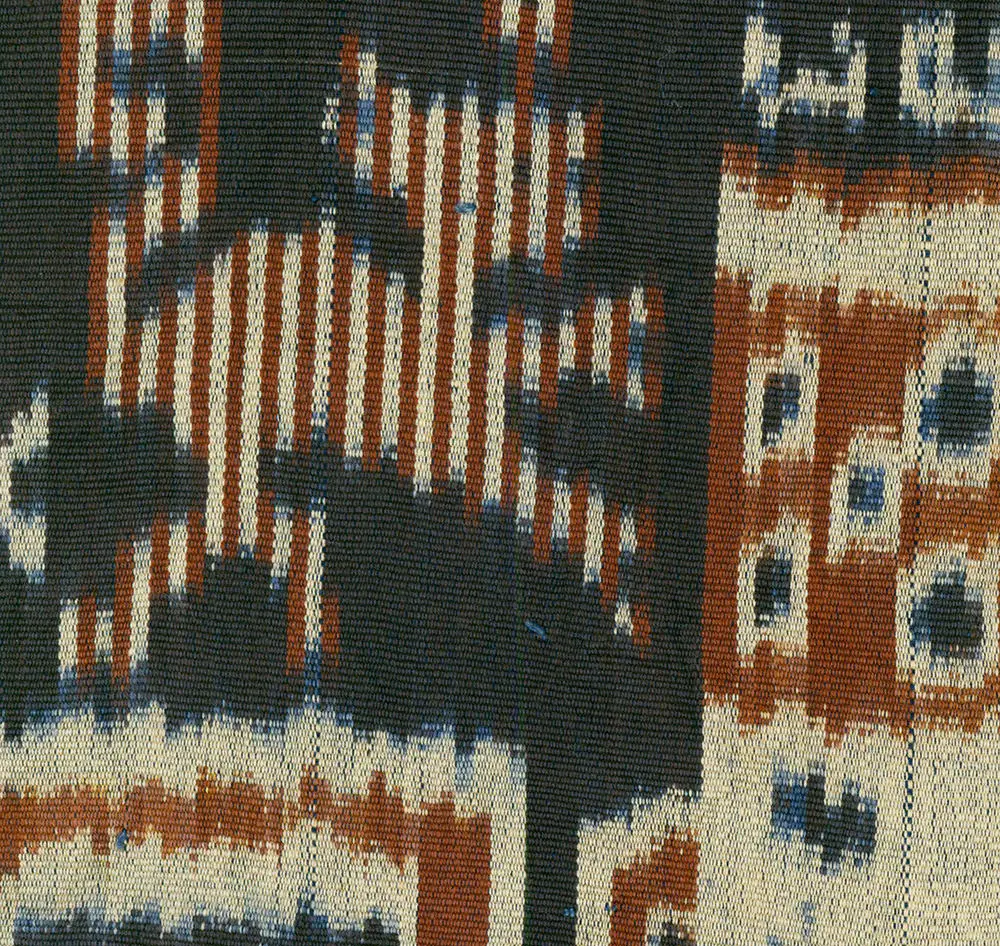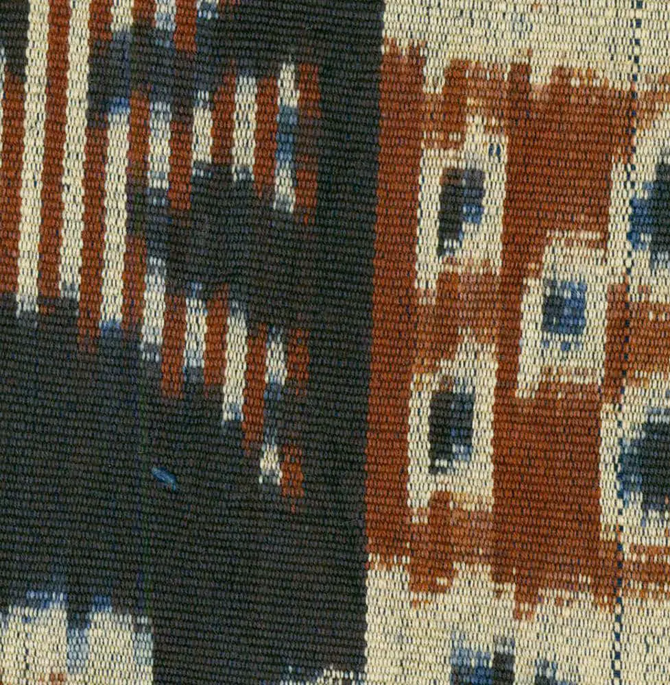This cotton ikat hinggi, a man's mantle, follows the traditional practice of being hand-stitched together from two separately woven sections. It's in excellent condition and measures approximately 93 inches by 49 inches, or about 236 centimeters by 124 centimeters.