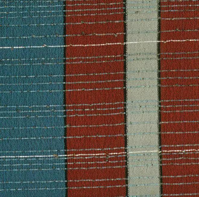 The aesthetic strongly evokes the Art Deco movement and Bauhaus design principles that were influential during this era. The geometric abstraction, bold color contrasts, and rational grid-like structure reflect the international modernist sensibilities that were being absorbed into Japanese textile design during the 1920s and 1930s. This represents a dramatic departure from traditional Japanese motifs toward a more cosmopolitan, machine-age aesthetic.