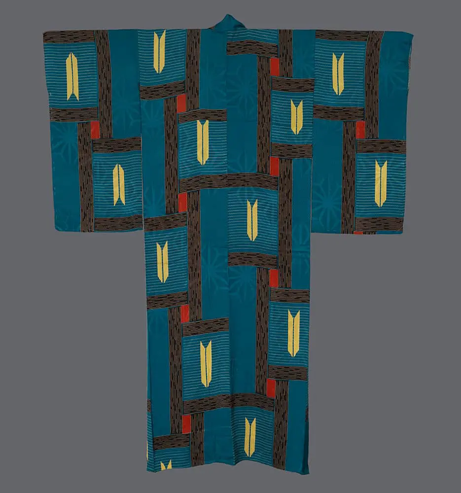 This type of design represents a departure from the more naturalistic, flowing motifs of earlier periods, embracing instead the angular, systematic aesthetics that became popular during Japan's increasing engagement with international modern design movements. The yabane motif itself is traditional and considered auspicious, but its presentation within this geometric framework shows how classical Japanese symbols were reinterpreted through a contemporary lens.