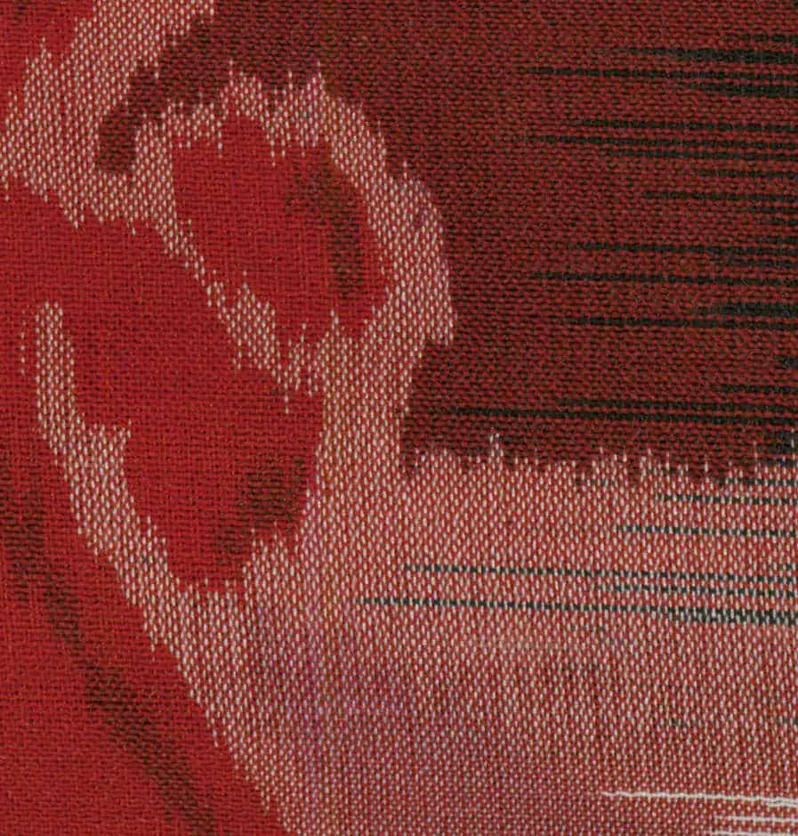 The color palette is particularly striking in its restraint - the bold contrast of black and white stripes provides a strong foundation, while the coral-red and steel-blue dragonflies create focal points that draw the eye across the garment. This limited but effective color scheme reflects the modern aesthetic sensibilities of the mid-20th century.