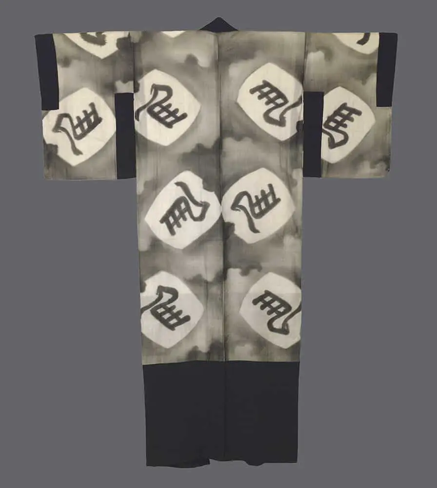The horse motif carries deep symbolic significance in Japanese culture, representing strength, nobility, and swift progress—qualities particularly auspicious during the early 20th century period of rapid modernization. As an undergarment, this dounuki would have provided both practical layering and a private display of refined taste, with the bold calligraphic design creating dynamic visual interest even when largely concealed. The sophisticated interplay between traditional dyeing techniques and bold graphic design reflects the innovative spirit of Taisho-era textile arts, where classical methods were employed to create strikingly modern aesthetic effects.