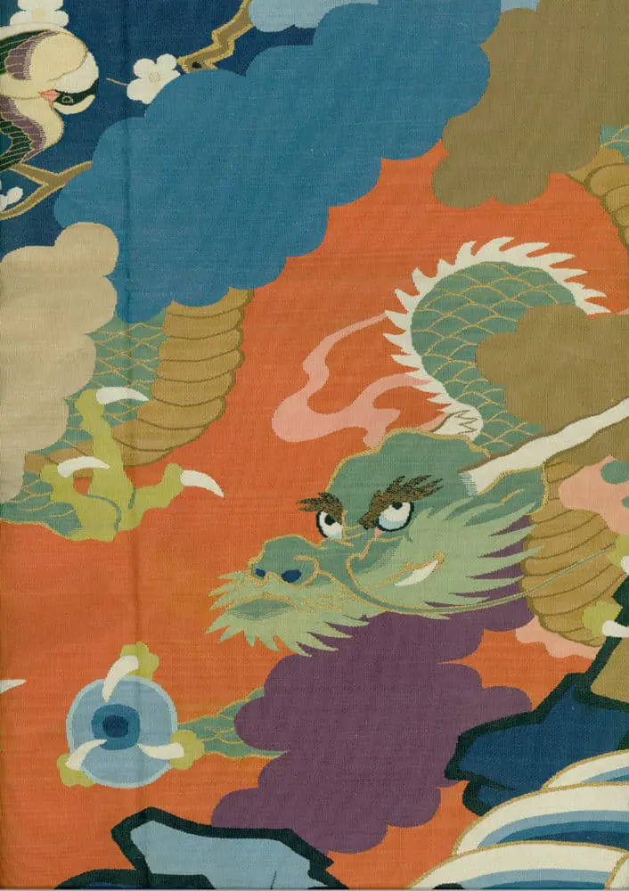 This artwork is featured on pages 68-69 of Ceremonial Textiles of Japan, 18th to 20th Centuries. This book, published by Yorke Antique Textiles, can be previewed or purchased on our website here.