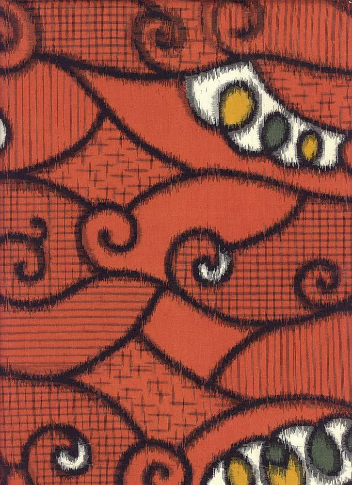This meisen silk panel features a kasuri ikat dyed abstract pattern, showcasing a slightly crisp texture with a smooth drape. It's in excellent condition, maintaining its quality and integrity. The panel measures 14.5 inches (37 cm) in width and extends to 69 inches (175 cm) in length.