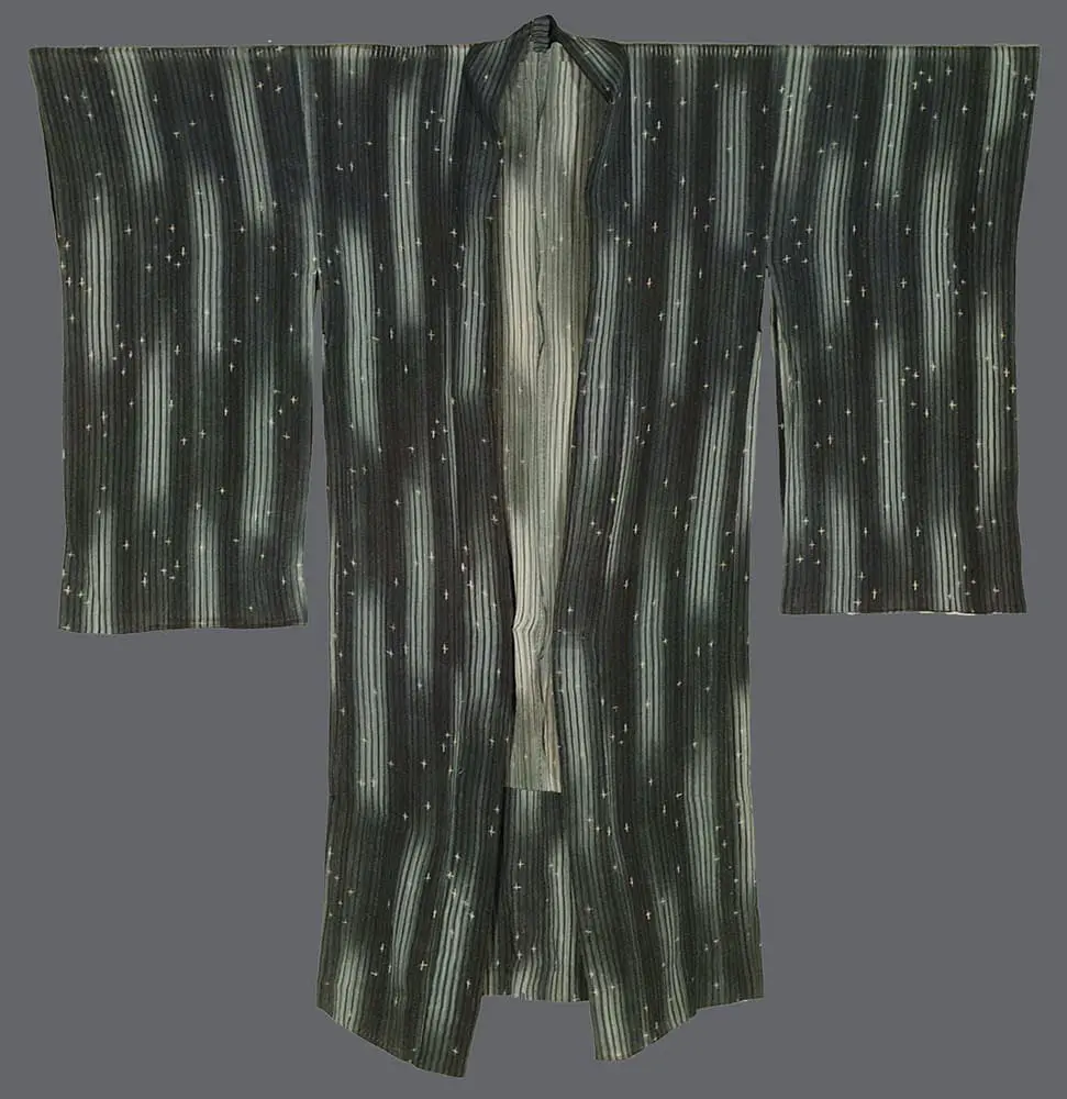 This ro hitoe silk haori, valued for its soft and loose texture, remains in very good condition, exhibiting only minor imperfections. It measures 48 inches (122 cm) from sleeve-end to sleeve-end and stands at 42 inches (107 cm) in height.