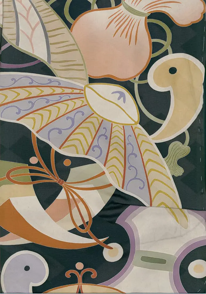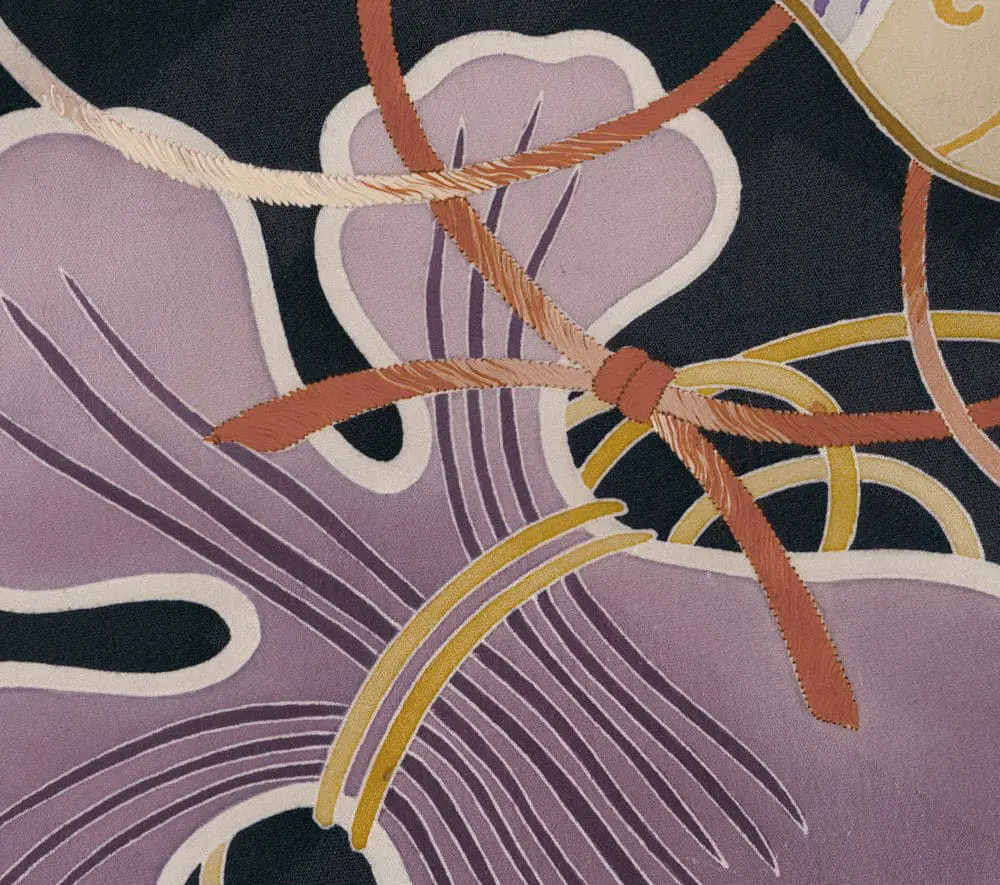In terms of influence, this haori's design is deeply rooted in traditional Japanese aesthetics. The use of auspicious motifs, the complex composition, and the rich color palette are all characteristic of traditional Japanese textile art. The overall design is also evocative of the decorative richness found in traditional Japanese paintings, screens, and lacquerware.