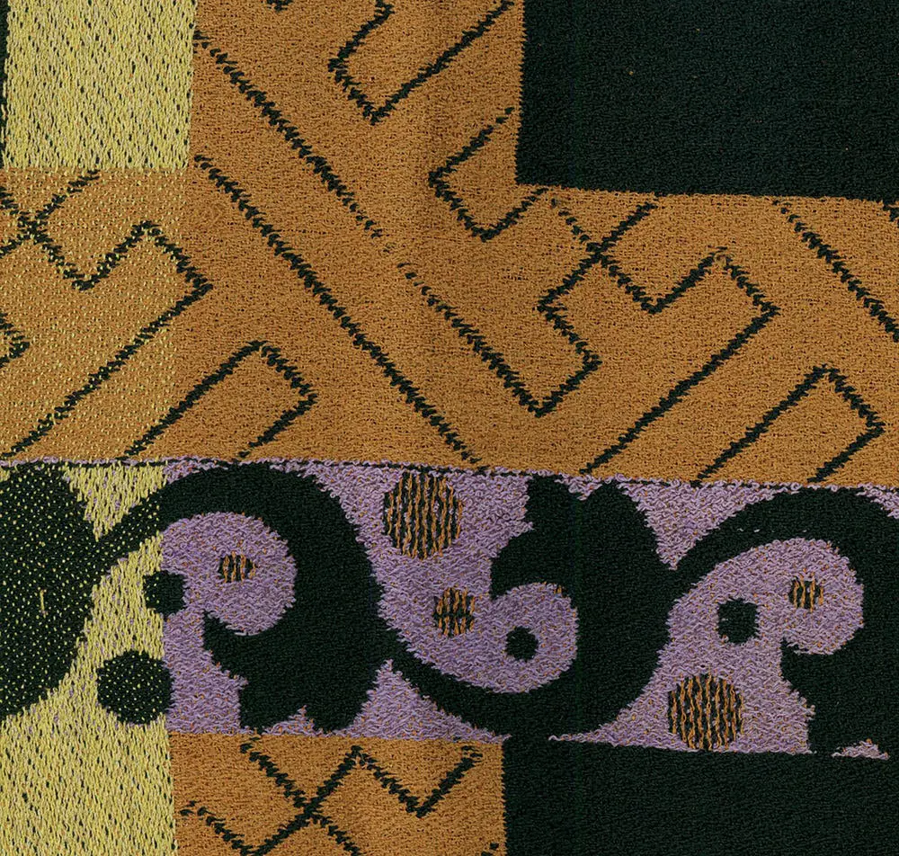 The weaving technique employed here demonstrates remarkable technical innovation, achieving effects that convincingly mimic hand embroidery through purely mechanical means. The thick silk construction not only provides the practical warmth required for winter wear but also creates a substantial surface that showcases the intricate pattern work. The contrast between the bold geometric lattice and the organic flowing motifs within each compartment creates a dynamic tension that speaks to the period's embrace of both industrial precision and natural beauty.