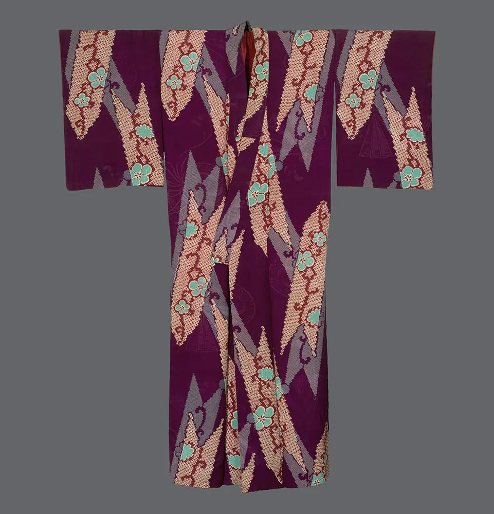 This artwork is featured on page 272 of Art Kimono: Aesthetic Revelations of Japan, 1905-1960. This book, published by Yorke Antique Textiles, can be previewed or purchased on our website here.