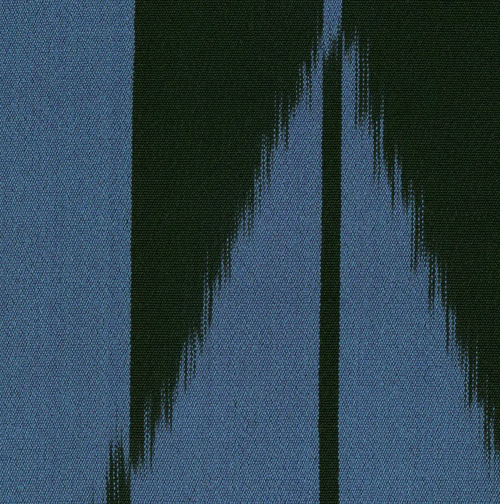 The kasuri technique, visible in the detail shot's subtle gradations and blurred edges where colors meet, adds a distinctly Japanese craftsmanship signature to what might otherwise appear as purely geometric abstraction. This ikat-dyeing process, where threads are resist-dyed before weaving, creates the characteristic soft transitions and slight irregularities that distinguish handcraft from mechanical production. The yabane pattern itself carries symbolic weight as a protective motif traditionally associated with driving away evil influences, making it particularly appropriate for formal wear, while its angular geometry resonates with the period's fascination with speed, progress, and technological advancement.
