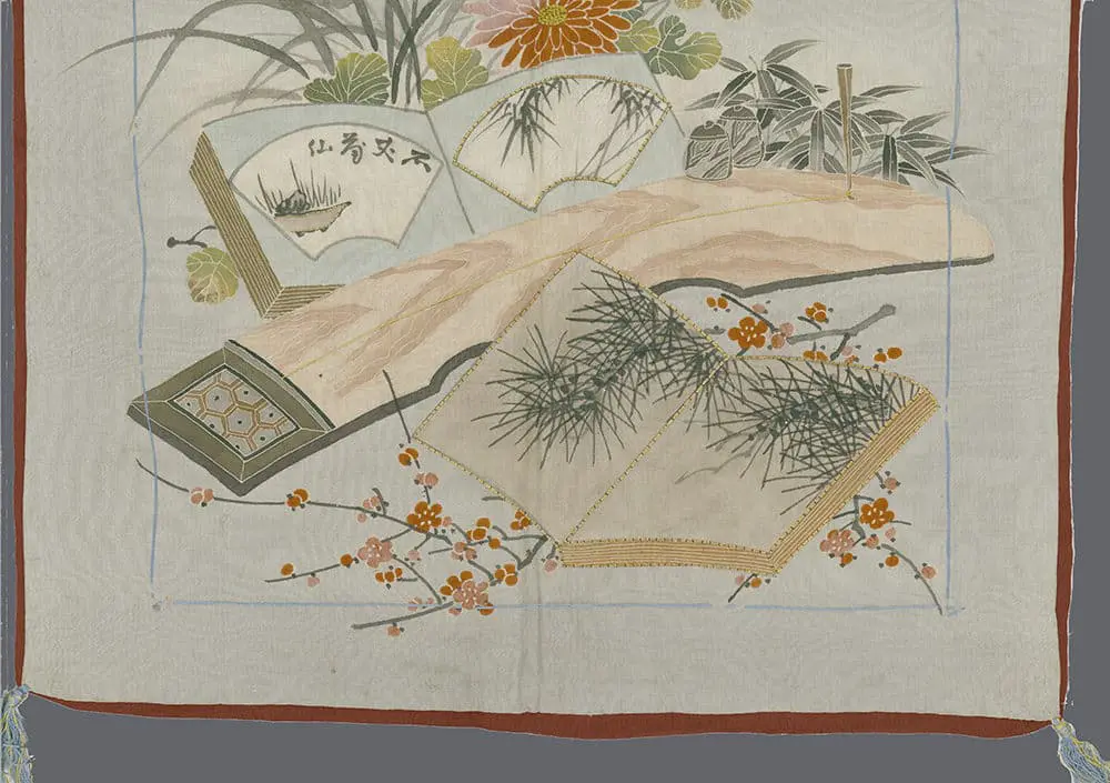 This artwork is featured on pages 184-187 of Ceremonial Textiles of Japan, 18th to 20th Centuries. This book, published by Yorke Antique Textiles, can be previewed or purchased on our website here.