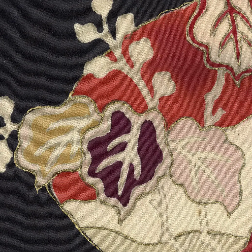 The circular medallion format, known as "maru" motifs, symbolizes completeness, harmony, and the cyclical nature of life in Japanese aesthetics. Each medallion functions as a miniature garden or seasonal vignette, containing carefully composed arrangements of what appear to be cherry blossoms, peonies, and other traditional flowers that carry associations with beauty, prosperity, and the ephemeral nature of existence. The sophisticated restraint of the overall design—allowing generous negative space between motifs—reflects the period's embrace of modernist principles while maintaining deep connections to classical Japanese decorative traditions.