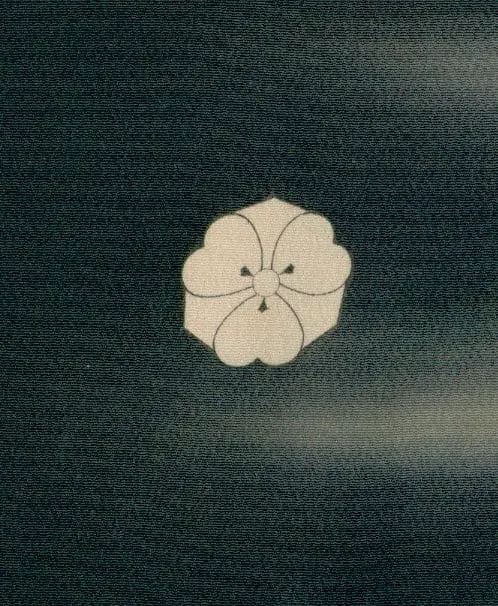 This magnificent kinsha silk kurofurisode represents the dramatic outer layer of the same elaborate three-piece kasane wedding ensemble as item 2410c, demonstrating how master artisans created cohesive yet distinct visual narratives across multiple garments. Following the traditional layering hierarchy, this black outer furisode would have been worn over the red middle layer and the white innermost garment (2410c), creating a sophisticated interplay of colors and motifs that honored the ancient Heian court tradition of kasane while embracing contemporary artistic innovation. The composition features six majestic cranes positioned across a twilight landscape of rolling hills and stylized clouds, their white forms creating striking contrast against the deep black silk ground, while delicate touches of coral red on their crowns echo the hidden red layer beneath.