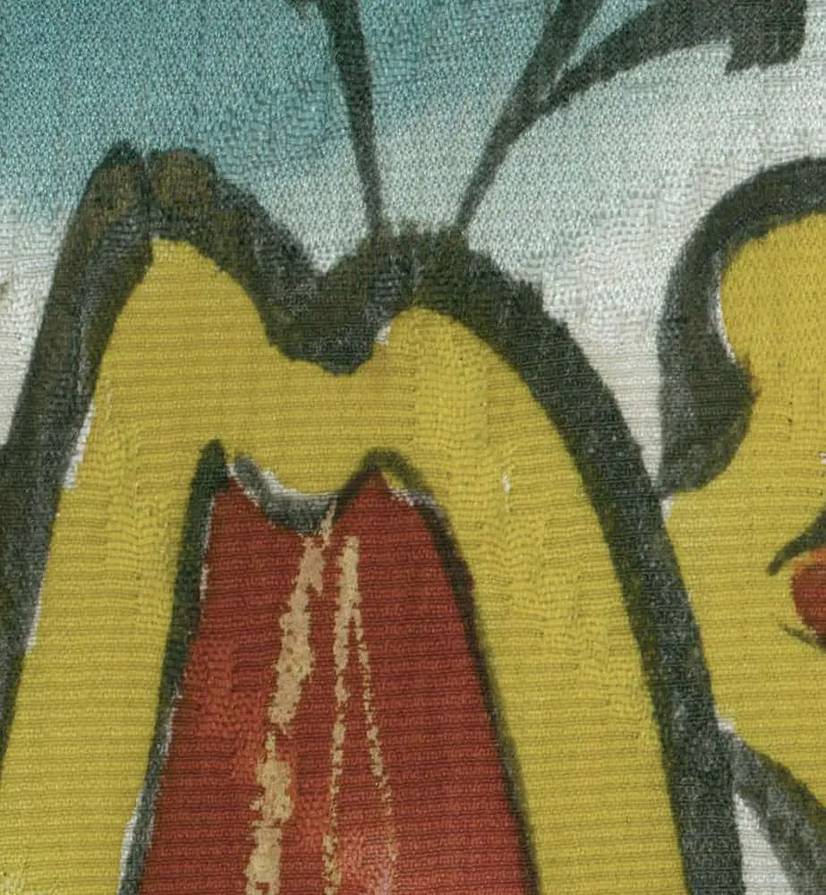 Base cloth: a figured silk (rinzu) with a paulownia and tendril pattern