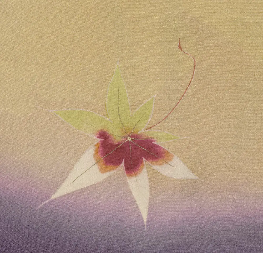 The use of bold, contrasting colors and the dynamic, almost abstract quality of the dripping pattern borders shows an aesthetic sensibility that seems to presage elements of Art Deco, particularly in its embrace of dramatic color contrasts and geometric patterns integrated with natural forms. However, this design remains fundamentally Japanese in its execution and spiritual approach to nature, exemplifying how Japanese textile arts often embraced bold, modern-looking design elements while remaining true to traditional techniques and aesthetic principles. The overall composition achieves a remarkable balance between dramatic visual impact and refined artistic execution, demonstrating the sophisticated design sensibilities of Japanese textile arts.