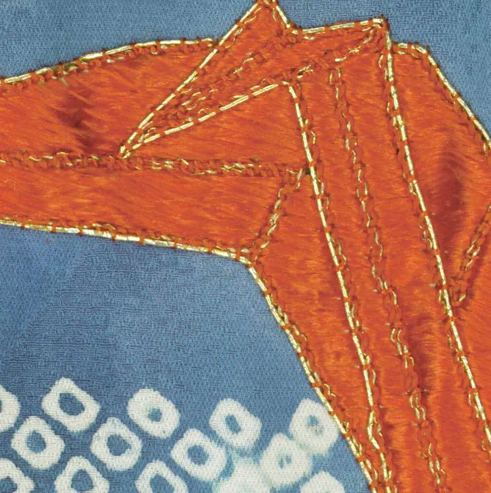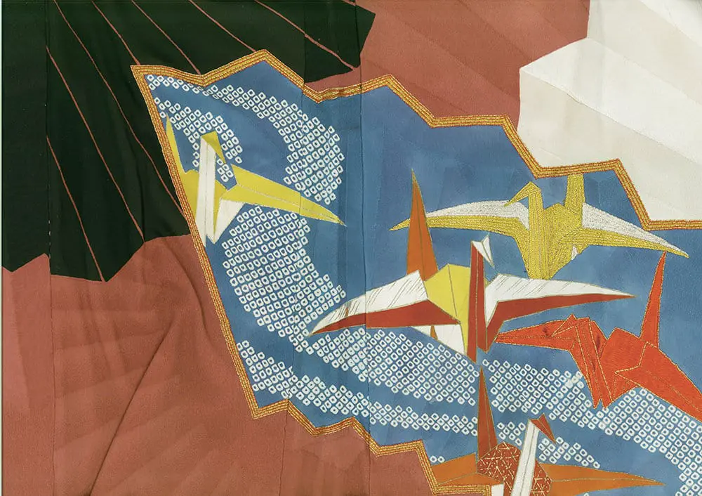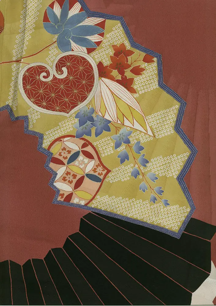 The large-scale fan pattern and the juxtaposition of different design elements create a modern, almost abstract composition, while the individual motifs remain rooted in classical Japanese symbolism. Additionally, the interplay of geometric shapes and the collage-like arrangement of the motifs evoke the spirit of early 20th-century modernism, particularly the work of artists like Henri Matisse and his cut-outs.