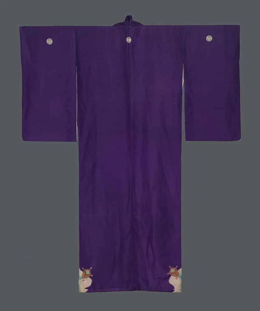 It possesses five family crests (mon) and measures 50 inches (127 cm) from sleeve-end to sleeve-end, standing at a height of 61 inches (155 cm).