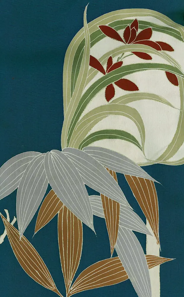 This artwork is featured on page 253 of Art Kimono: Aesthetic Revelations of Japan, 1905-1960. This book, published by Yorke Antique Textiles, can be previewed or purchased on our website here.